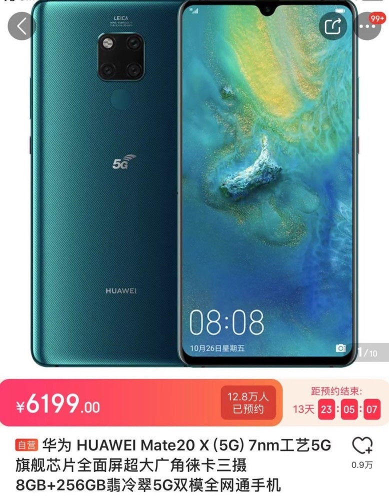 截止8月2日上午11时,记者看到,华为京东自营官方旗舰店中,已有12.8万人预约了将于8月16日上市、售价6199元的Mate 20 X(5G)手机。天猫华为官方旗舰店预约人数近9.2万。售价4999元的中兴Axon10 Pro 5G手机也将于8月5日正式开始发售。